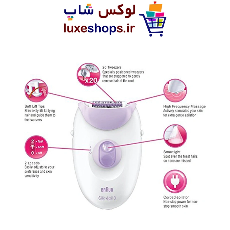 ازبین بردن موهای زاید توسط روش های مختلفی امکان پذیر است که یکی از این روشها استفاده از اپیلاتور است. شرکت براون بهعنوان یکی از معروف ترین تولید کننده ماشینهای اصلاح آقایان و خانم ها شناخته می شود. اپیلاتورهای این شرکت در دسته های مختلف تولید و روانه بازار شده اند. اپیلاتور Braun SE3-170 یکی از مدل های سری 3 این شرکت است که دارای 20 موچین برای جداکردن موهاست. جنس این موچین ها از استیل بوده و روی یک غلتک پلاستیکی قرار دارند. در دو طرف این غلتک دو رول ماساژور قرار داده شده تا سر اپیلاتور راحت تر روی پوست حرکت کند و احساس راحتی بیشتری را فراهم آورد. روی غلتک علاوه بر موچین ها، زایده های پلاستیکی بسیار ریز با سر گرد قرار دارد که وظیفه ی آنها بلند کردن موها و هدایت آنها به سمت موچین ها است. به کمک این زایده ها، حتی موهای خوابیده هم از چنگ موچین ها رهایی ندارند. سرعت چرخش سر اپیلاتور قابل تغییر است و توسط دکمه روی بدنه، بین دو حالت آرام و سریع تغییر می کند. بالای این دکمه، یک چراغ نیز قرار داده شده تا با روشن کردن موضع، دید بهتری را فراهم آورد. 3170 تنها در حالت متصل به پریز برق کار میکند. برای تمیزکردن اپیلاتور می توان سر آن را توسط دو دکمه قرار داده شده در بدنه جدا و تمیز کرد. بدنهی اپیلاتور دارای طراحی ارگونومیک است و پشت آن برآمدگی های ریزی دارد که احتمال لیزخوردن دستگاه از دست را کم میکند. به طور خلاصه Braun 3170 دارای 20 موچین، دو رول ماساژ، زایده های بلند کننده مو و چراغ روشنایی است. که در حالت متصل به پریز برق کار می کند.