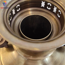 سرویس سماور ذغالی تمام برنج لوکس شاپ با کیفیت عالی، طراحی زیبا و با اصالت از مشهور ترین تولیدی های کشور تهیه شده است. این سرویس شامل سماور زغالی مهردار (برای کارایی بهتر داخل سماور قلع (سفید) شده است.)، قوری، پارچ، سینی زیر سماور و کاسه می باشد و قابلیت استفاده دارد. شما می توانید این سرویس را با خیال راحت از لوکس شاپ (luxeshops.ir) خرید کنید و درب منزل یا محل کار خود تحویل بگیرید.