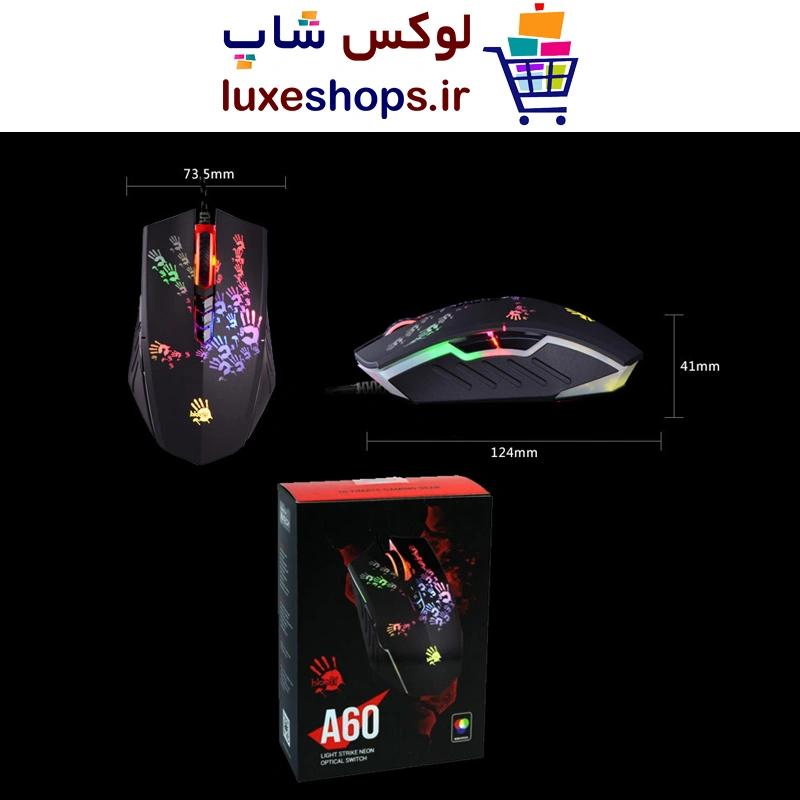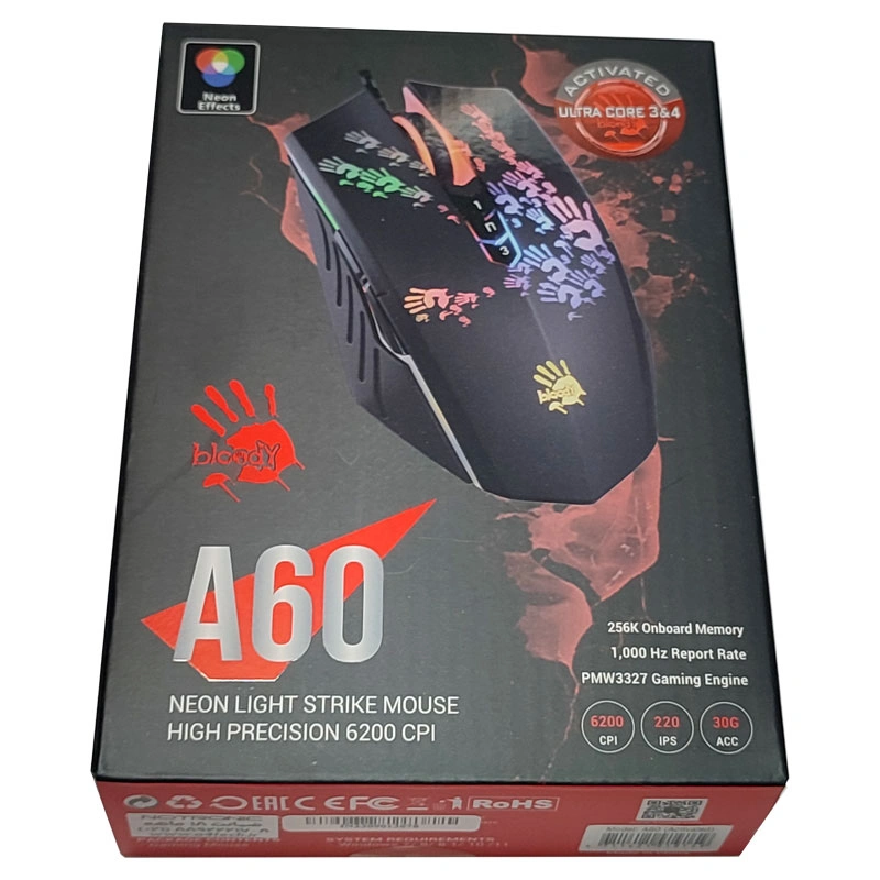 A4tech یکی از بزرگ ترین شرکت های تولید کننده تجهیزات و لوازم جانبی کامپیوتر در جهان می باشد. این شرکت محصولات گیمینگ خود را با نام تجاری Bloody وارد بازار کرده است. در این محصولات از جدیدترین تکنولوژی های روز دنیا و بهترین متریال استفاده شده است. موس گیمینگ بلودی A60 دارای سریع ترین زمان پاسخگویی کلیک در جهان می باشد. تکنولوژی اختصاصی لایت استرایک با استفاده از میکرو سوئیچ مادون قرمز و با سرعت نور می تواند تنها در 0.2 میلی ثانیه به کلیک ها پاسخ دهد.