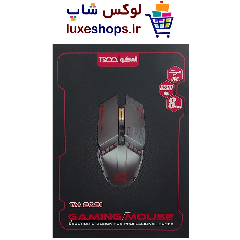 خرید ماوس گیمینگ تسکو مدل TM-2021GA به شما امکان می دهد فضای بازی را با سرعت 7200 DPI تحت اختیار خود داشته باشید. این موس به 8 دکمه مجهز شده است که کنترل آن را بسیار آسان می کنند. در این میان می توانیم به دکمه افزایش و کاهش حساسیت و دو دکمه Back و Forward اشاره کنیم. یکی از برجسته ترین خصوصیات این موشواره، نورپردازی داخلی چندرنگ است که با روشن شدن موس، ظاهری حیرت آور به میز کامپیوتر شما می دهد.