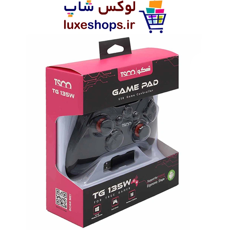 گیم پد تسکو مدل TG 135W یک دسته بازی از برند تسکو است، که از یک باتری قابل شارژ لیتیوم پلیمری با ظرفیت 400 میلی آمپر ساعت بهره گرفته شده است. این باتری برای حدود 6 تا 8 ساعت بازی کافی خواهد بود و برای شارژشدن کامل به 3 ساعت زمان نیاز دارد. گیم پد تسکو مدل TG 135W با استفاده از تکنولوژی بلوتوث به گوشی موبایل شما متصل میشود. محدودهی عملکرد بلوتوث در این دستهی بازی 8 متر است. بنابراین باید توجه داشته باشید زمانی که میان این دسته و گوشی موبایلتان ارتباط برقرار میکنید، اگر فاصله شما با دسته بیشتر از 8 متر باشد، ارتباط قطع خواهد شد.