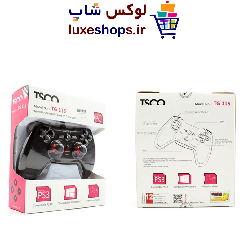 دستهی بازی TSCO مدل «TG 115» وسیلهی جانبی کنسول PS3 است که با ویندوز هم سازگاری دارد؛ یعنی میتوانید با این دسته به بازی با کامپیوتر و پلیاستیشن 3 بپردازید. به لطف ویبراتوری که در این دسته تعبیه شده است، گیمرها در لحظات حساس بازی، هیجان زیادی را تجربه میکنند. مجموع کلیدهای روی دسته و بالای آن بدون درنظرگرفتن آنالوگ استیکها 16 عدد میباشد. این مدل باسیم به واسطهی یک کابل USB به به طول 1.8 متر به کامپیوتر شما متصل میشود.