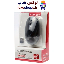 موس بی سیم TM 688W ساخت شرکت تسکو است. طراحی این ماوس ارگونومیک است و این باعث می شود دست کاربر در استفاده طولانی خسته نشود. انرژی ماوس TSCO TM 688W از طریق ۱ عدد باتری قلمی AA تامین می شود و از اتصال Plug & Play پشتیبانی می کند. حسگر اپتیکال با دقت متغیر بین ۸۰۰، ۱۲۰۰، ۱۶۰۰ نقطه در اینچ و بدنه ساخته شده از جنس پلاستیک ABS مقاوم در برابر فشار و ضربه و دارای ۴ عدد کلید فیزیکی شامل کلید DPI به منظور تغییر میزان دقت از دیگر ویژگی های ماوس تسکو TM 668w است. اتصال بی سیم از طریق دانگل USB با برد اتصال بی سیم ۱۰ متری انجام می شود.