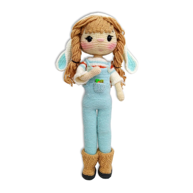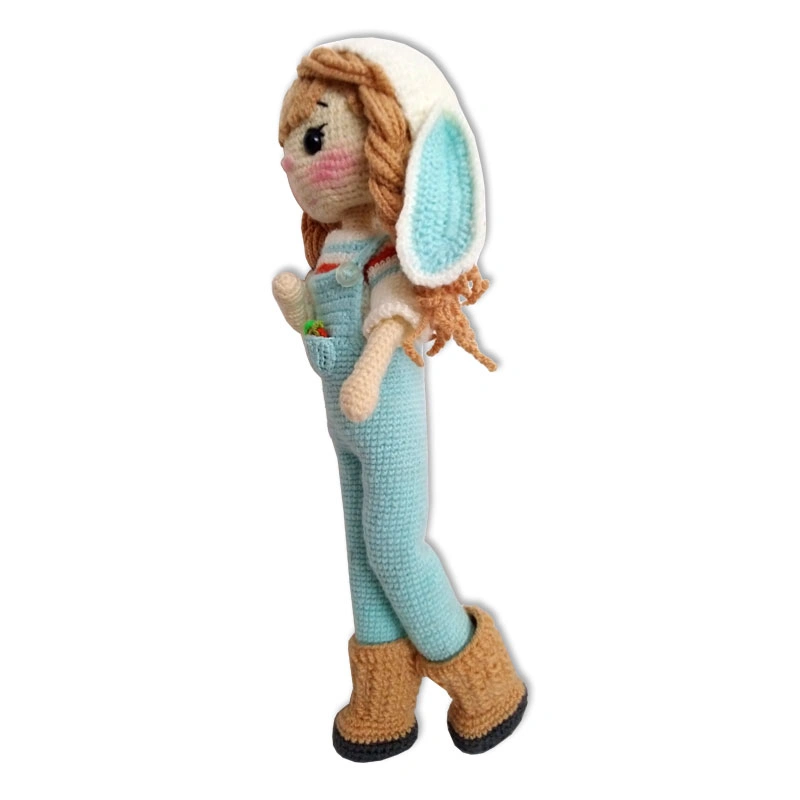 » در این عروسک، کلاه ، بلوز، چکمه ، شلوار سرهمی و حتی هویج های کوچولو تو جیب لباس، قابلیت تعویض دارند.