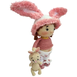 » عروسک دختر بامزه به همراه یک عروسک خرگوش است.