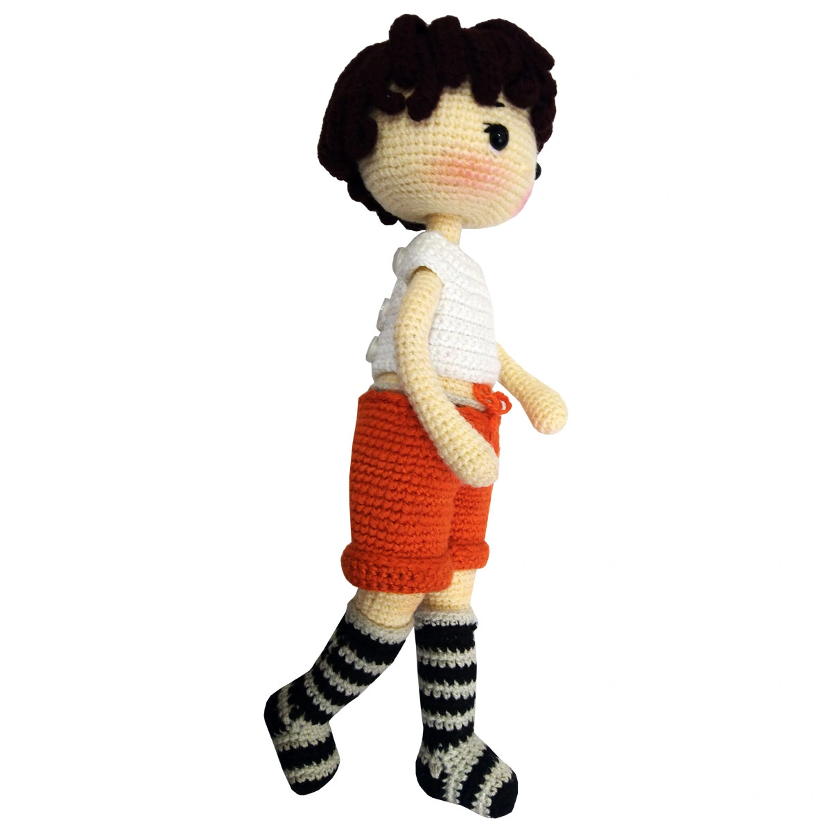 » این عروسک با دقت و ظرافت تمام بافته شده است. این عروسک بیشتر به پسر کتاب خوان معروف است. و در کیف خود یک عدد کتاب بافتنی دارد.