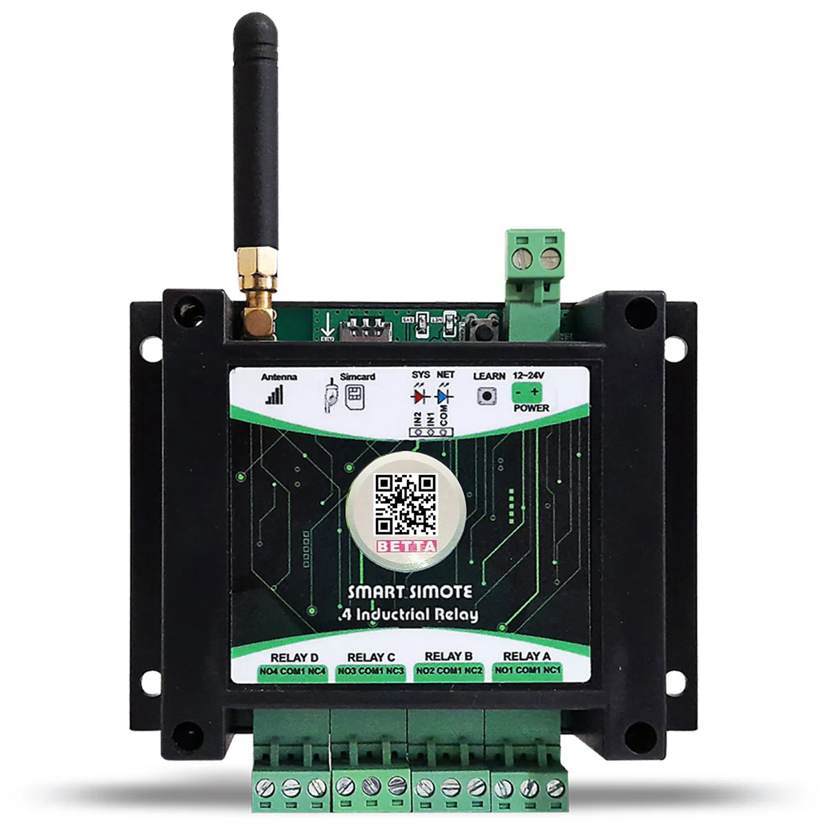 سیموت 4 رله صنعتی بتا یک رسیور صنعتی سیم کارتی قابل کنترل از طریق تماس، پیامک، اپلیکیشن و ریموت کنترل است. این دستگاه دارای 4 عدد رله آزاد جهت کنترل از راه دور ادوات برقی با ریموت کنترل از فاصله 70 متری و کنترل با پیامک با حذف محدودیت فاصله است. سیموت 4 رله صنعتی بتا دارای تمام ویژگی های سیموت های نسل قبل از خود می باشد، از قبیل: