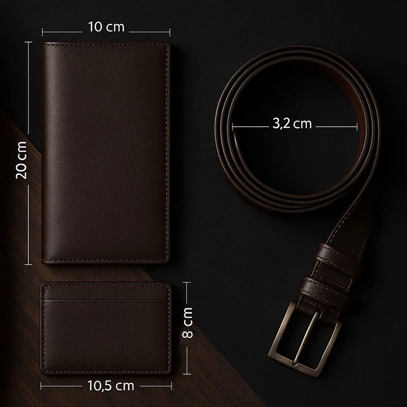 ست چرم طبیعی مردانه SK-04 کیف پول، کمربند، جاکارتی و کیف موبایل چرم گاوی